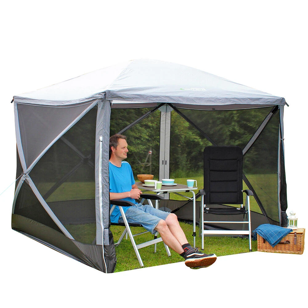 Introducing the lightweight Screenhouse 4 freestanding gazebo and utility shelter, pitched quite literally in seconds as a result of our innovative fibreglass pop up system; this gazebo provides simply the most FLEXIBLE utility space to complement your camping, caravanning or motorhoming setup, specifically designed with cooking, relaxing, storage, pets, shelter, dining and affordability in mind! • 240HD high density all weather fabric